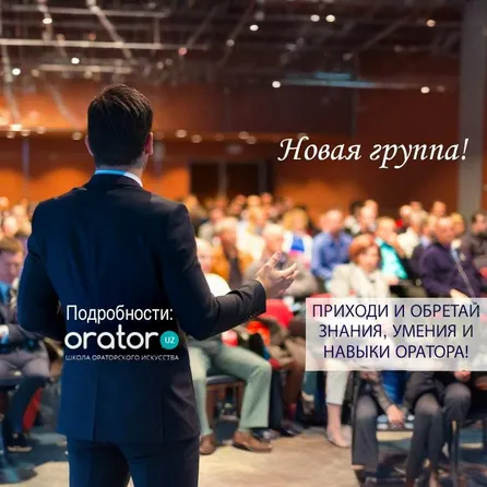 23 января состоится презентация тренинга «Основы ораторского мастерства» с формированием дневной и вечерней групп. Обучение начнётся 27 января и продлится 4 недели, два раза в неделю. Предоставляются скидки для категорий слушателей, действует бонус за раннюю оплату. Презентация и тренинг пройдут в бизнес-центре «DMAAR PLAZA» в Ташкенте.